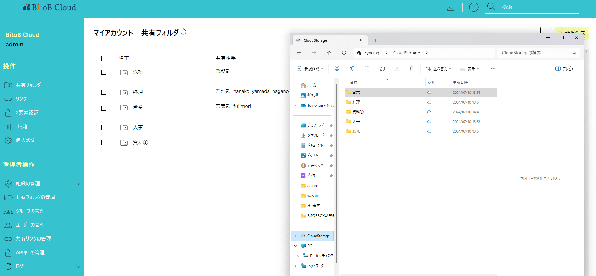 専用アプリをインストールすることによって、普段のパソコン操作と同じようにクラウドストレージが利用できます。